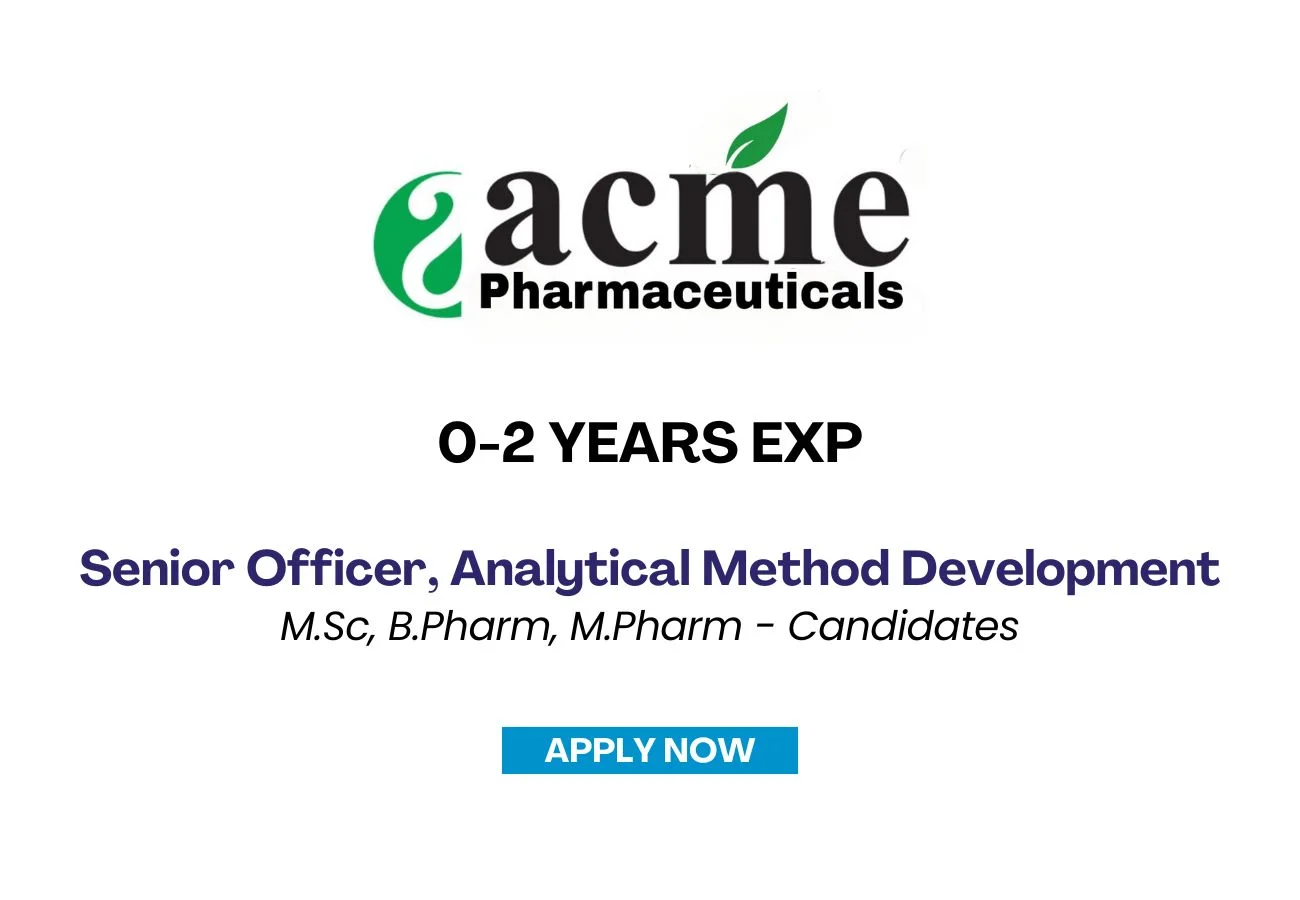 0-2 years exp? Join: Acme Pharma is Hiring for Senior Officer, Analytical Method Development