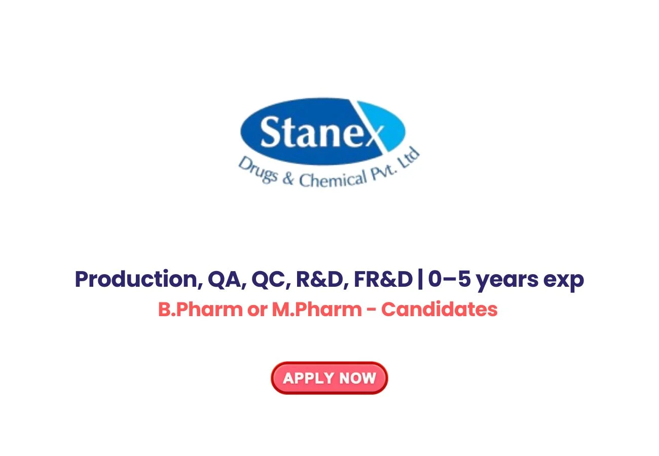 Join Stanex Drugs and Chemicals Pvt. Ltd. – Walk-In Interviews for Multiple Positions!