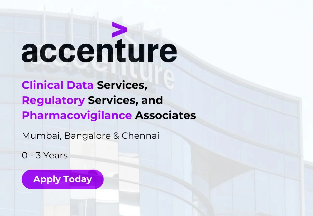 Accenture is seeking motivated and detail-oriented professionals to join our expanding Life Sciences team. We have openings for Clinical Data Services Associates, Life Science Regulatory Services Associates, and Pharmacovigilance Services Associates. These roles offer an excellent opportunity to contribute to cutting-edge projects within the biopharmaceutical industry, working with leading global clients and advanced technologies. If you have a strong academic background in pharmacy, life sciences, or a related field, coupled with relevant experience, we encourage you to apply and take the next step in your career with Accenture.
