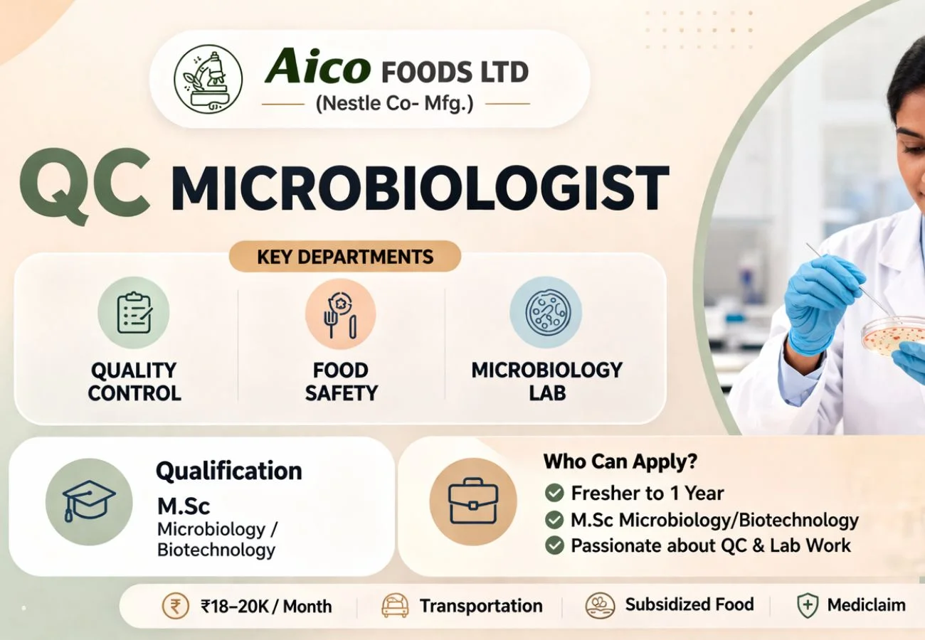 Aico Foods Ltd is Hiring FRESHERS for QC Microbiologist Job