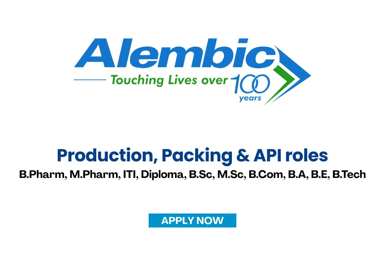 Alembic Pharmaceuticals Limited is seeking skilled and passionate professionals to join our growing team in Vadodara. We are conducting a walk-in interview for various roles across our Production, Packing, and API divisions. This is an excellent opportunity for candidates looking to advance their careers within a reputable pharmaceutical company that operates world-class manufacturing facilities.