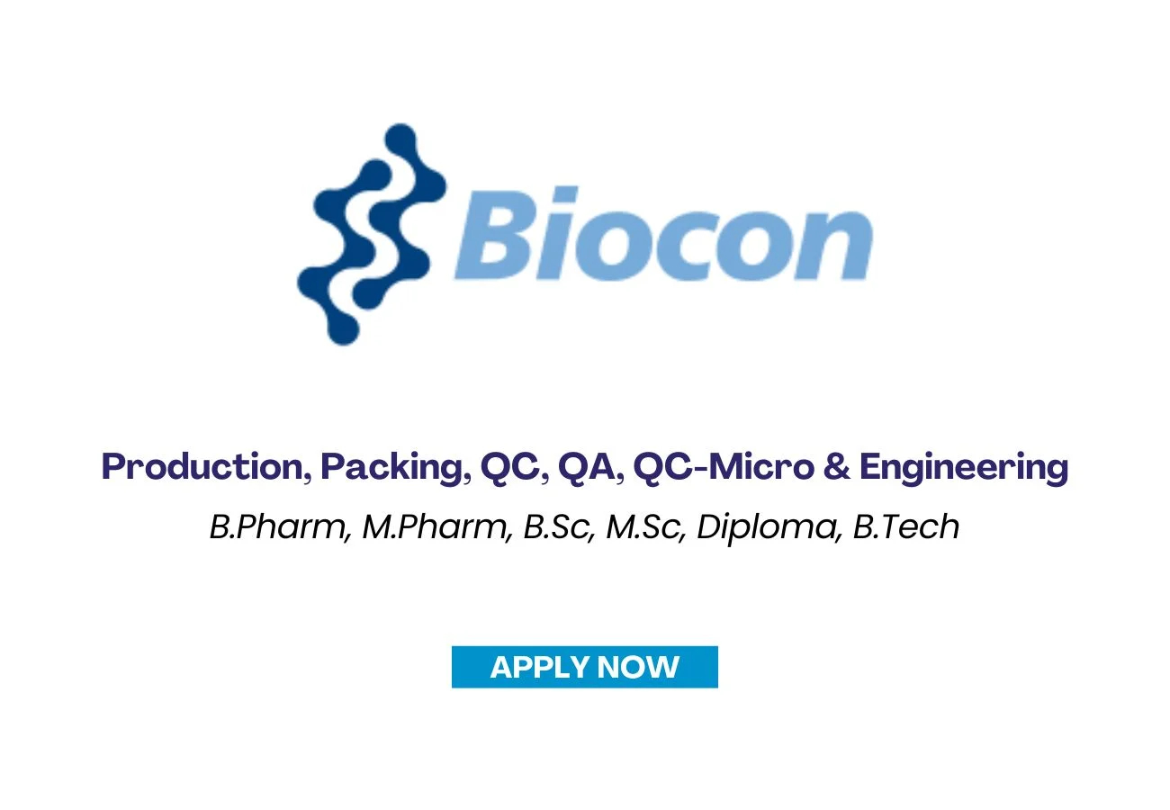 Biocon Limited Walk-In Drive – Bangalore: Shape the Future of Biopharmaceuticals!