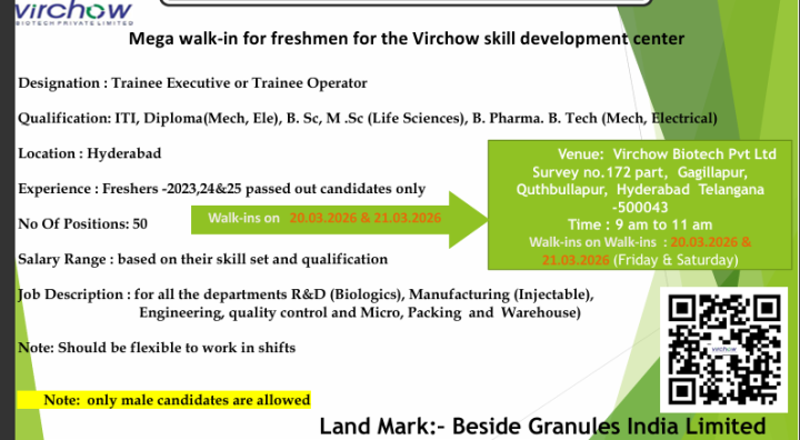 - Venue: Virchow Biotech Pvt Ltd, Survey No. 172 Part, Gagillapur, Quthbullapur, Hyderabad, Telangana – 500043