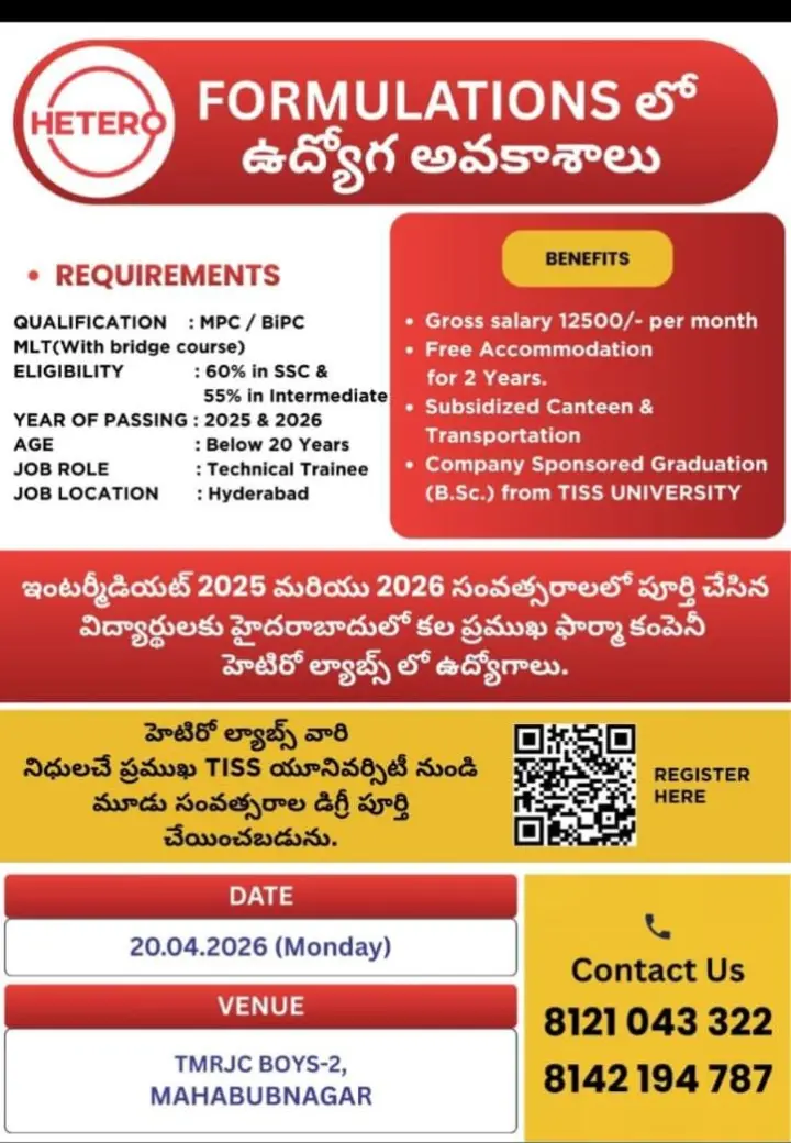 Hetero is currently organizing a walk-in recruitment drive to identify and onboard fresh talent. As a leader in the pharmaceutical industry, Hetero remains committed to fostering professional growth and providing a platform for enthusiastic individuals to begin their careers in a dynamic environment. We are inviting eligible candidates to attend our upcoming recruitment event to discuss potential roles and career paths within our organization.