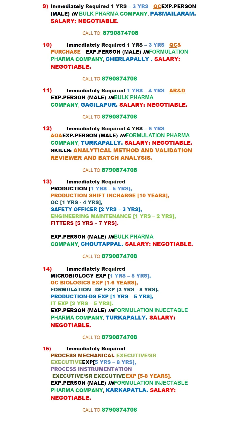 - Qualification: Relevant degrees (B.Pharm, M.Pharm, M.Sc, etc.) depending on the technical nature of the role.