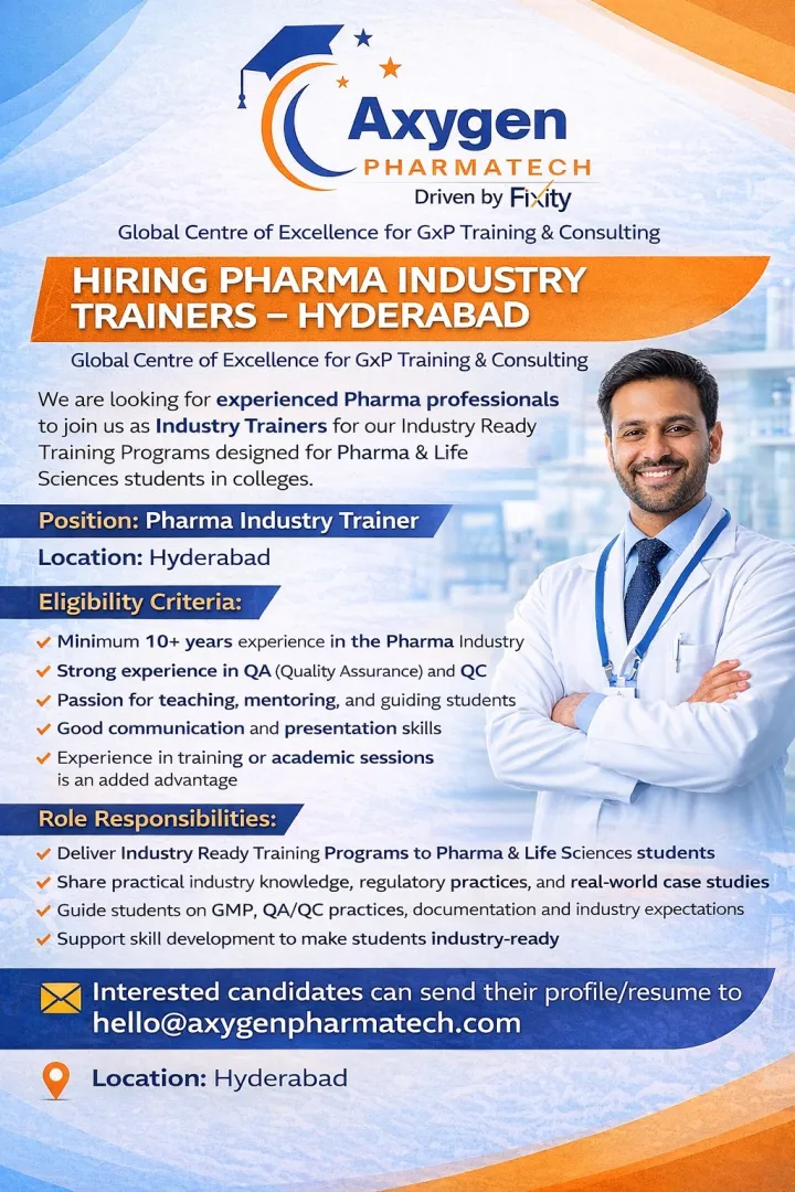 The Global Centre of Excellence for GXP Training & Consulting is seeking passionate and seasoned pharmaceutical professionals to join our team in Hyderabad as Industry Trainers. This is a unique opportunity for industry experts to transition their deep technical knowledge into a rewarding educational role. You will play a pivotal part in shaping the next generation of life sciences professionals by delivering high-impact training programs that bridge the gap between academic theory and real-world industrial expectations. If you are an experienced QA/QC veteran with a desire to mentor the leaders of tomorrow, we invite you to apply.