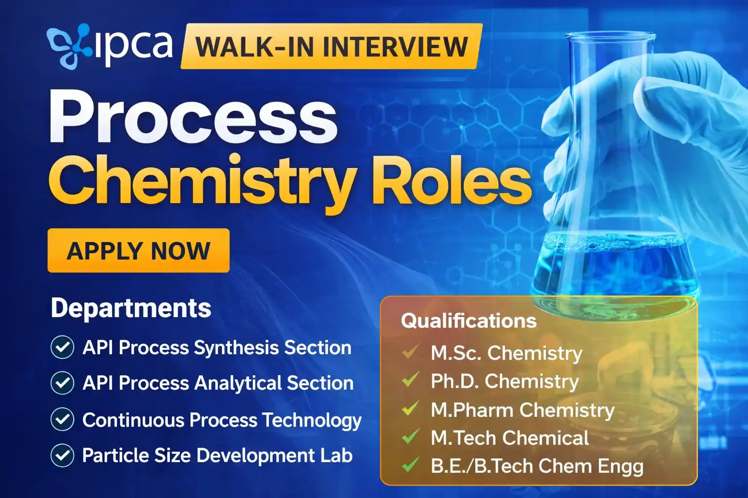 Career Opportunity: Process Chemistry Excellence (API R&D) at Ipca Laboratories Limited