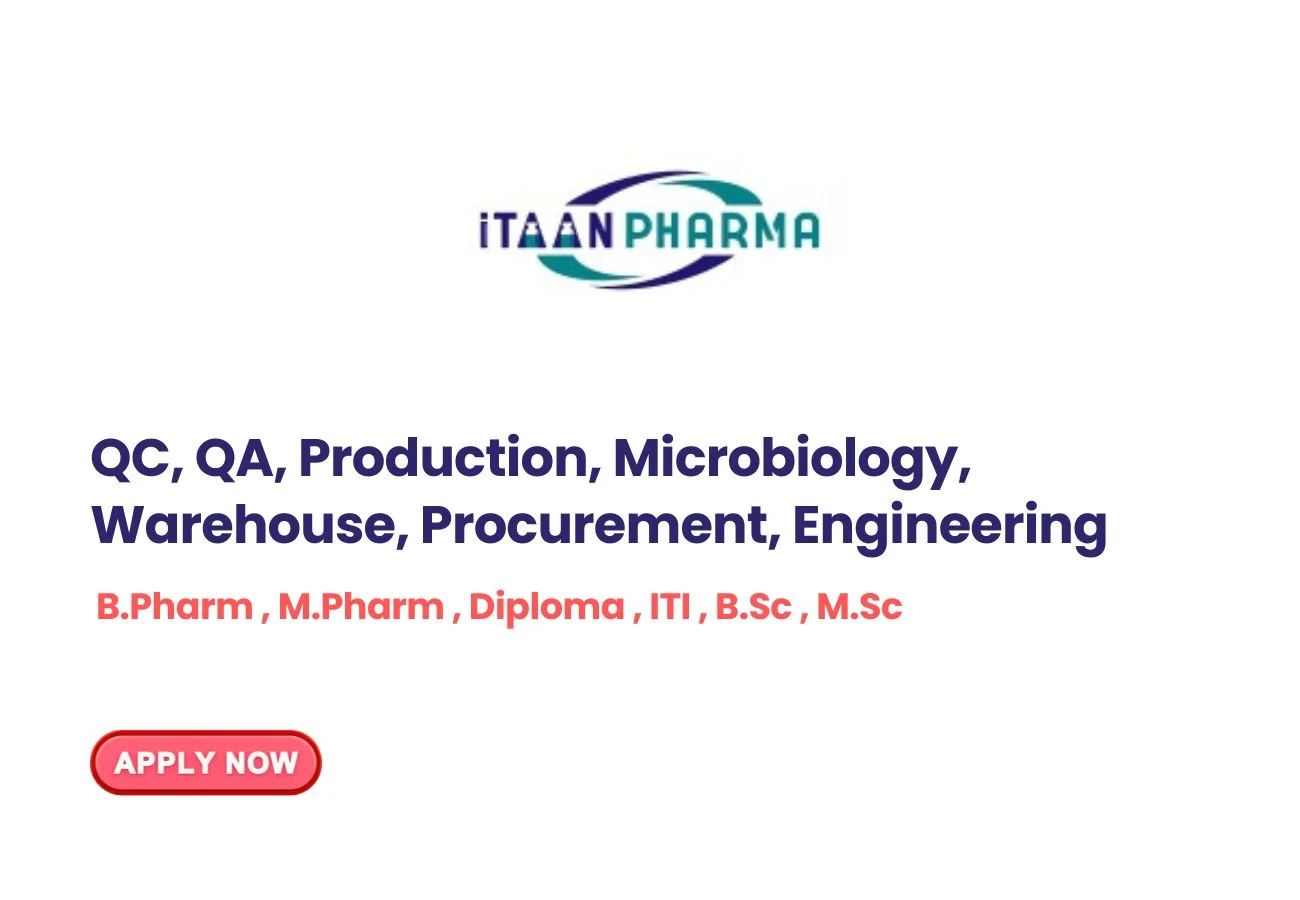 Itaan Pharma is Hiring for QC, QA, Production, Microbiology, Warehouse, Engineering