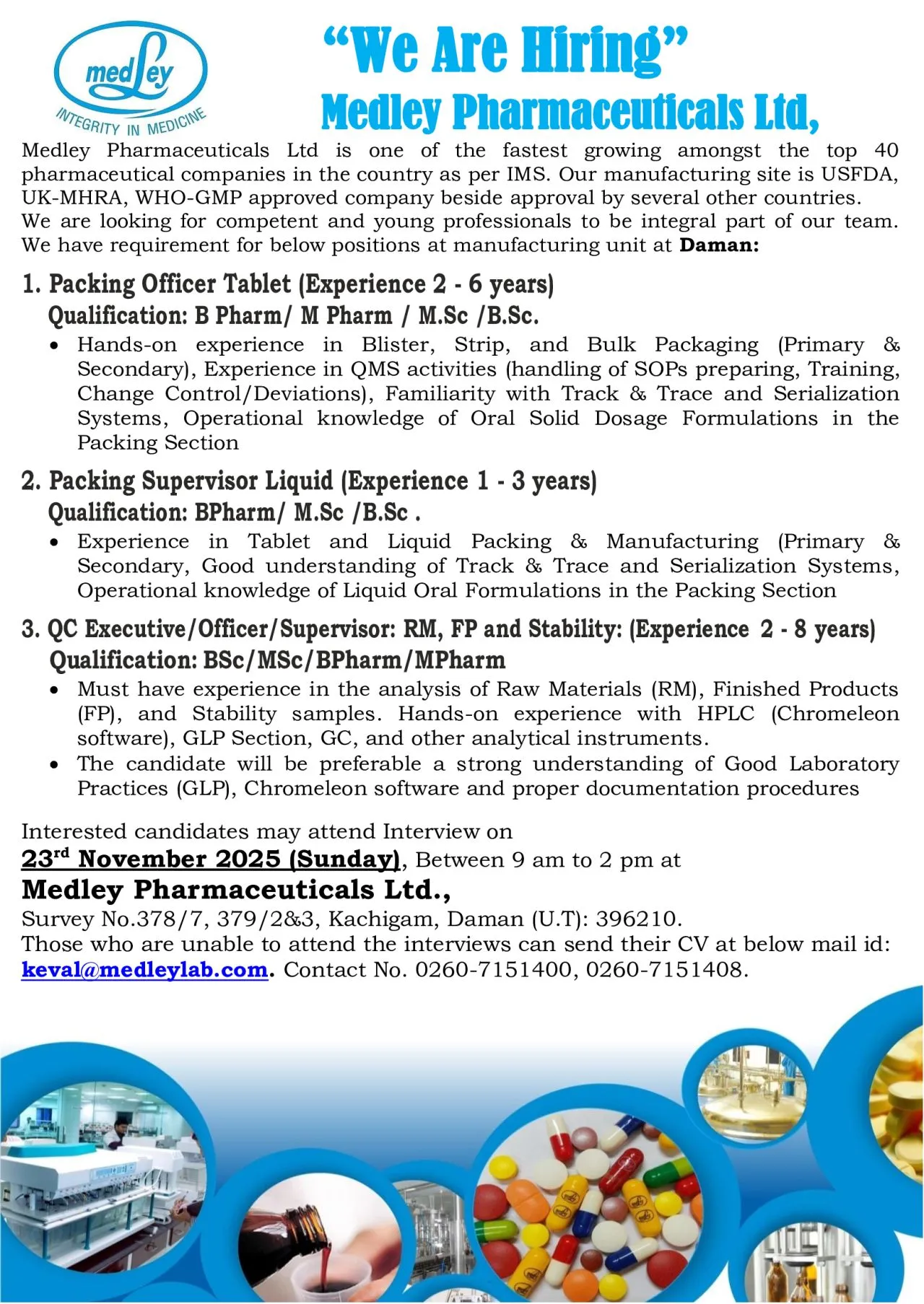 Medley Pharmaceuticals Ltd – Walk-in Interview 2025