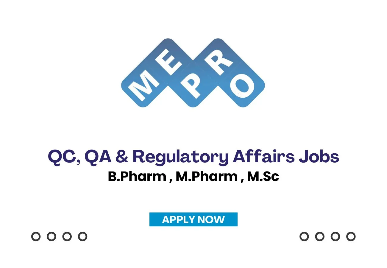 Mepro Pharmaceuticals Hiring 2025 – QC, QA & Regulatory Affairs Jobs