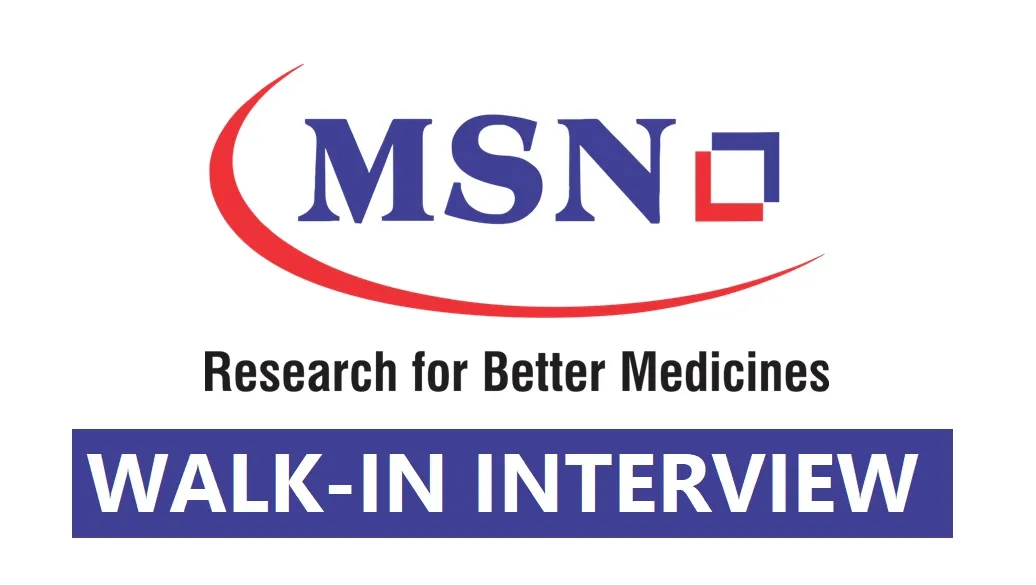 Exciting Career Opportunity at MSN Laboratories! We are delighted to announce that MSN Laboratories is conducting a Walk-in Drive on 21st& 22nd Nov’ 2025 (Saturday) at our MSN Laboratories, Unit 2, Kardanur, Patancheru.