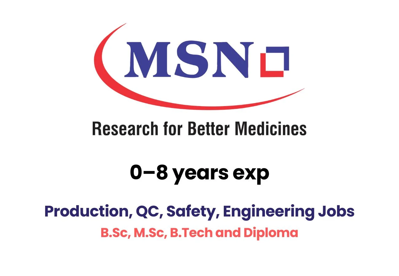 MSN Organics Pvt. Ltd., a Great Place to Work-Certified and rapidly growing API manufacturer under the esteemed MSN Group, is hosting a Walk-In Drive on Saturday, December 6th, 2025, at our state-of-the-art facility in Bibinagar, Yadadri Bhongiri District, Telangana. We are seeking talented and motivated individuals to join our dynamic team across various departments, including Production, Quality Control, Safety, and Engineering. This is an exceptional opportunity for B.Sc, M.Sc, B.Tech, and Diploma holders to advance their careers within a progressive and employee-centric pharmaceutical company.