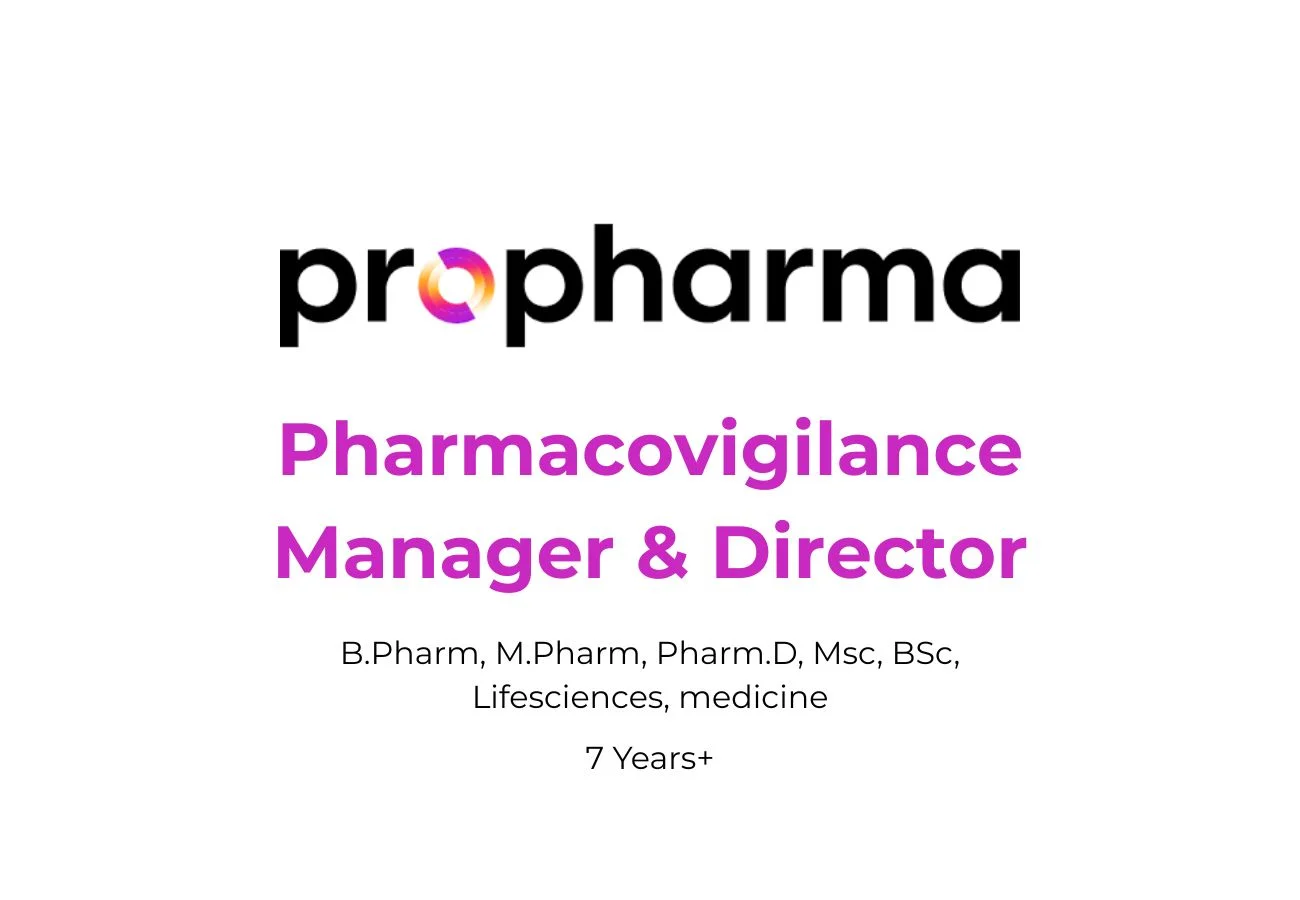 ProPharma, a global leader in drug safety, regulatory affairs, clinical research, and medical information services, is seeking experienced and passionate Pharmacovigilance professionals to join our growing team in India. We have exciting opportunities for both a Pharmacovigilance Manager and a Pharmacovigilance Director to contribute to our mission of ensuring patient safety and product compliance. If you are a driven individual with a strong understanding of pharmacovigilance principles and a desire to lead and mentor teams, we encourage you to apply.