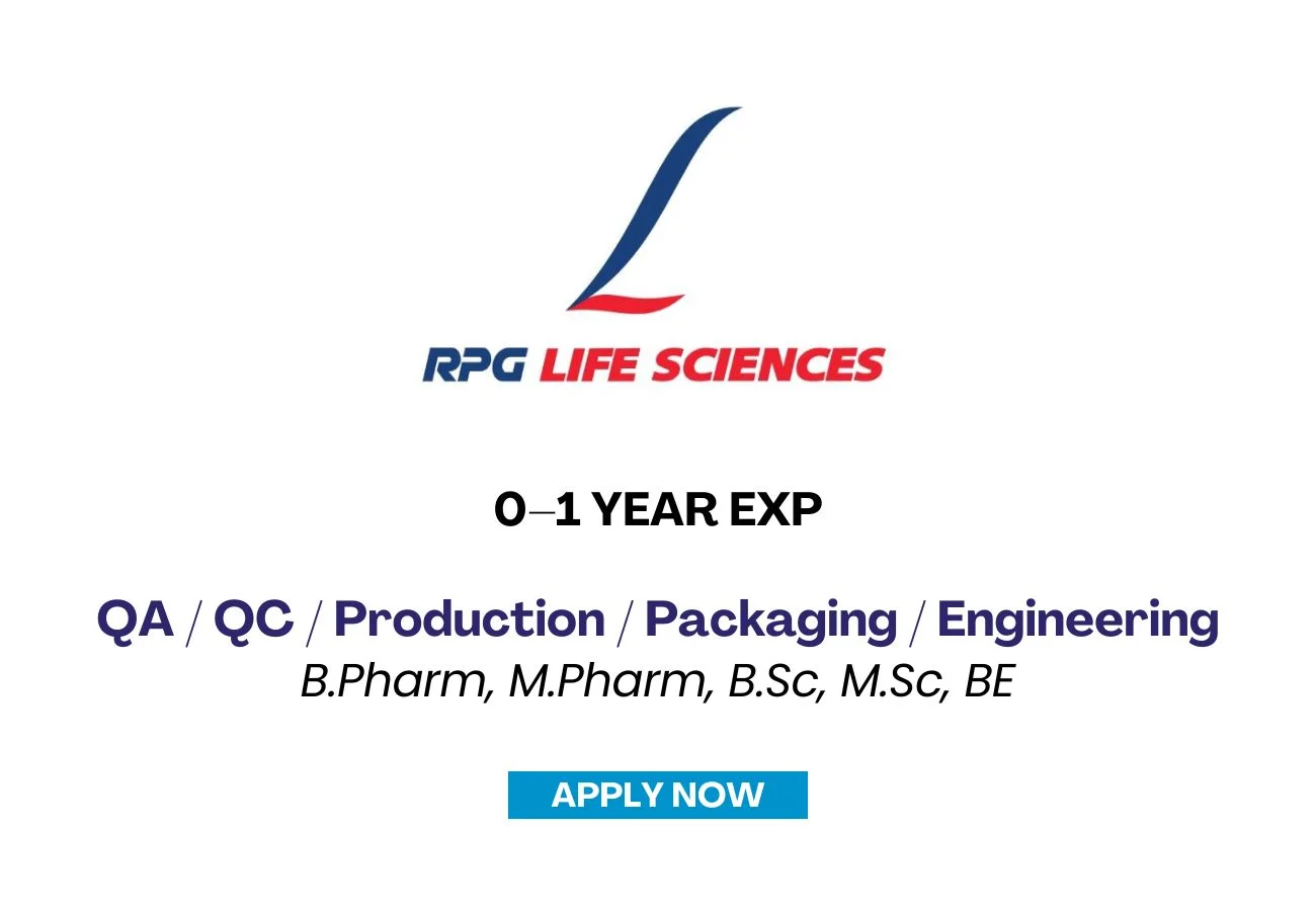 RPG Life Sciences Ltd., a leading pharmaceutical company, is seeking talented and motivated freshers to join our dynamic team in Ankleshwar, Gujarat. We are conducting a Walk-In Interview on December 1st, 2025, for entry-level positions across various departments. This is an excellent opportunity for recent graduates to kickstart their careers in a fast-paced and rewarding environment with a company that values growth and development. If you are a B.Pharm, M.Pharm, B.Sc, M.Sc, BE, or B.Tech graduate from the 2023, 2024, or 2025 batch, we encourage you to attend.