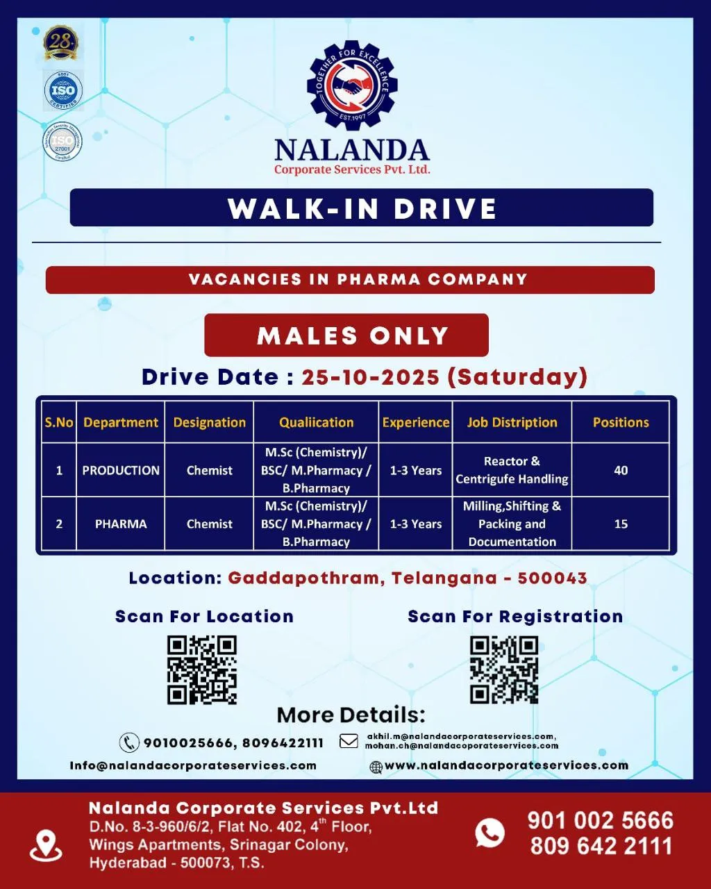 - Drive location: Nalanda Corporate Services Pvt.Ltd
