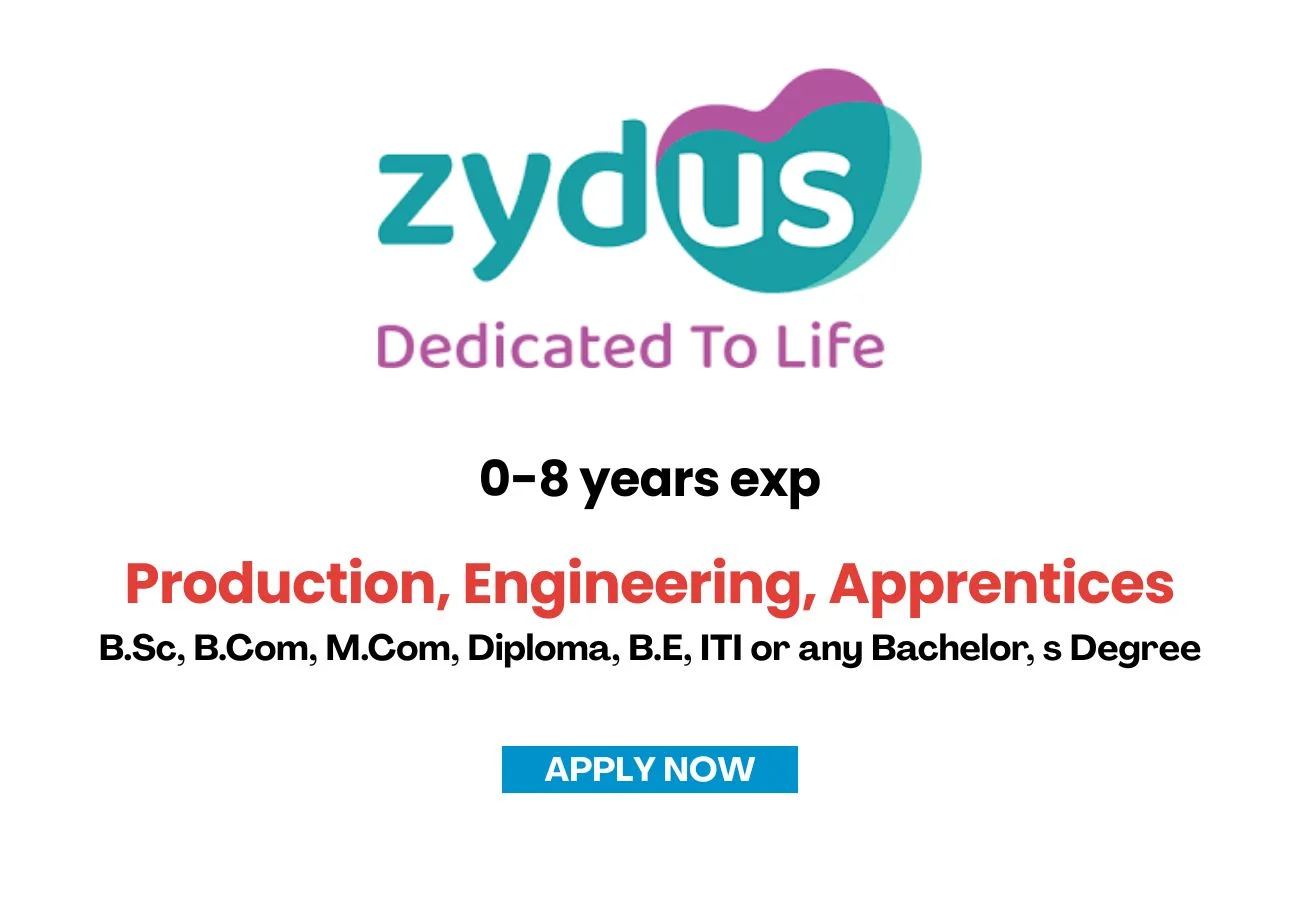 Zydus Lifesciences Limited is seeking motivated professionals and fresh graduates to join our API Unit-1 in Ankleshwar, Gujarat. We are conducting a walk-in interview to fill various positions across our Production, Engineering, and Technical departments. This is an ideal platform for individuals looking to build a career in the pharmaceutical industry with a global leader committed to health and innovation.